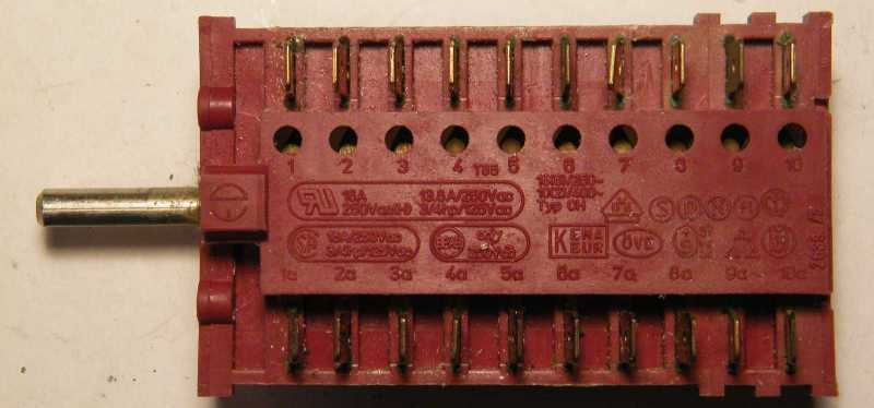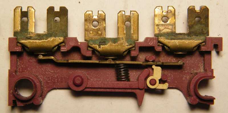 Így, hogy már nincsenek útban a vezetékek, egészen jól olvashatók a számok. Most már persze mindegy... Akarom mondani, a kapcsoló a helyére bekötve már csak azért sem volt szétszerelhető, mert bár ezen az oldalán csak egy, a másikon azonban több átkötés is volt, amitől az egyes elemi kapcsolók nem voltak szabadon szétfordíthatók. |