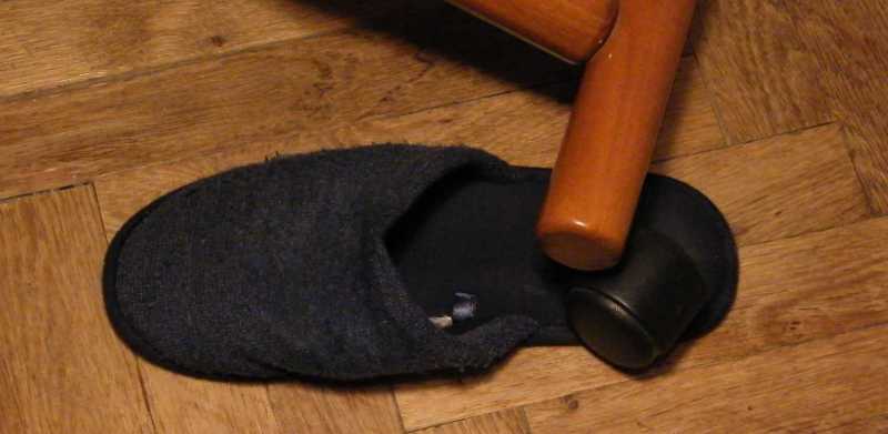 térdeplőszékkel rágurulni az egyik papucsomra, igenlő válasszal szolgált az