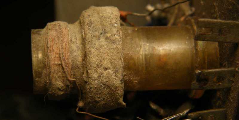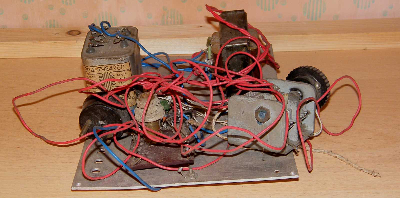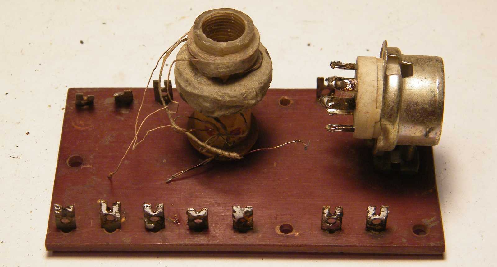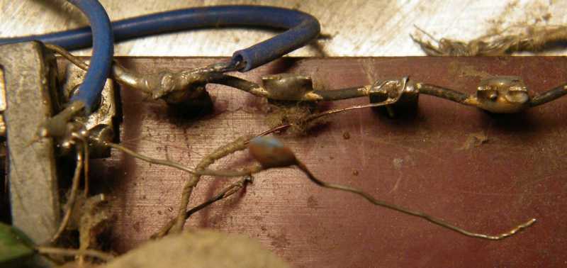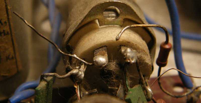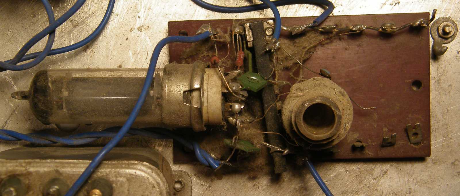 Bár az anódfeszültség szűrésére szolgáló elkót nem találtam, de az a hosszúkás fekete valami esetleg lehet dióda. Mármint a szovjet pajtásoknak nagyon is voltak a megszokottól teljesen elütő formájú alkatrészeik. Ebben az összeállításban meg ugye elég sok szovjet alkatrész található. |