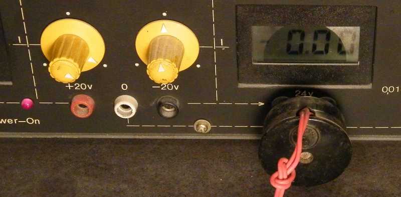 Bár a labortáp pákakimenete 23 helyett 28 V-ot ad, a trafó eredeti feszültsége ettől még bőven megsaccolható. Ha pontos bemeneti feszültséget szeretnék, az sem veszett ügy, csak akkor apukám állítható kimeneti feszültségű pákatrafóját kellene használnom, ami egy kissé (jobbra és lefelé fél méterrel) messzebb van. |