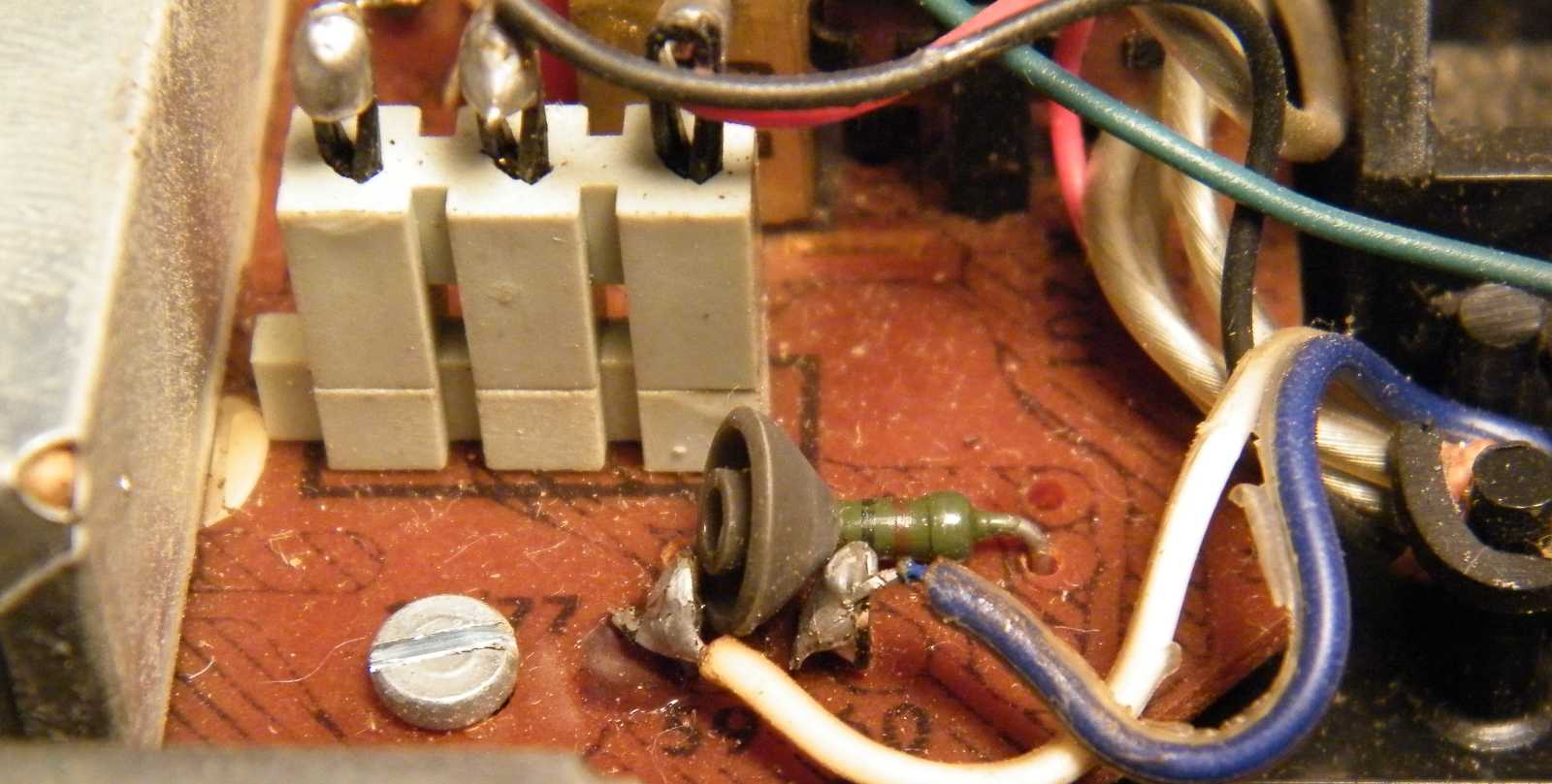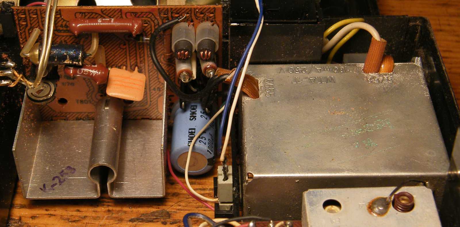 Bár elsőre azt hittem, hogy a rádió panelját látom hátulnézetből, ez azonban a hangerőt és a hangszínt szabályzó potmétereket hordozó panel, a 90 fokkal elfordított, oldalról ráforrasztott programválasztó kapcsolók paneljával. |