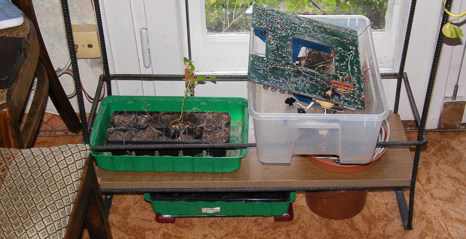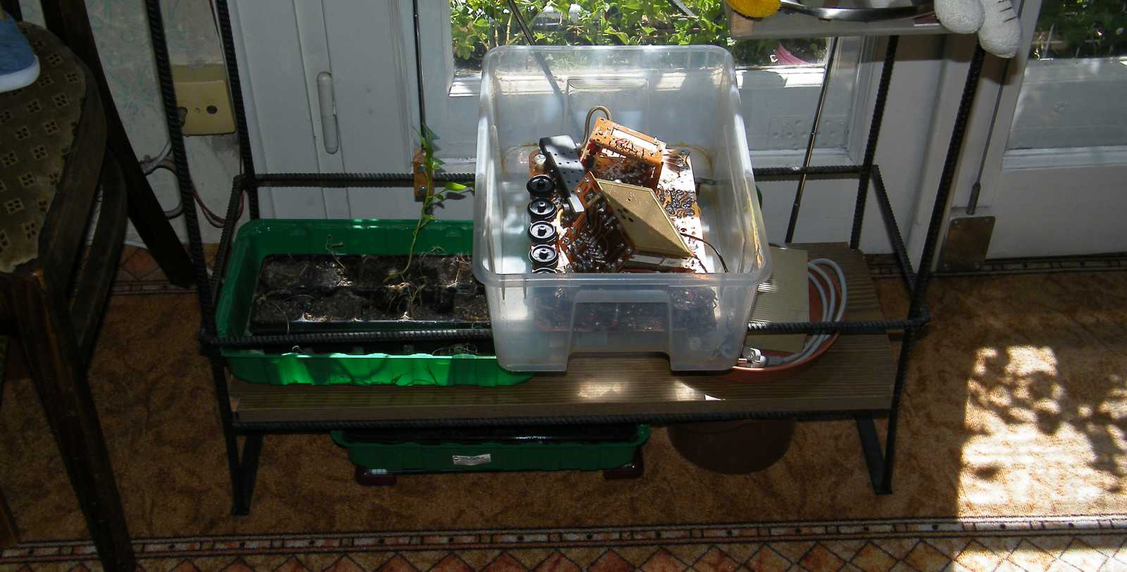Mikor a panel nyomása alól felszabadult virágállványt - mint elért nagyszerű eredményt - megtekintettem, menten rájöttem, hogy a virágföldes vödröt hagytam odalent, mire fel szegény paprikapalántának még csak esélye sincs átültetődnie! Épp amint ahogy annak sem látom esélyét, hogy a vonattrafót még ma szétszedjem. |