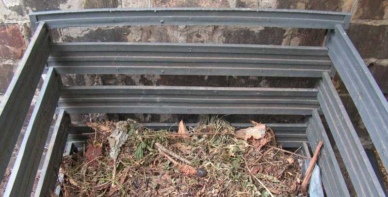 Bár úgy néz ki, mintha a komposztáló már félig lenne, csakhogy ami benne van, az most már nem tartalmaz földet (vagy csak nagyon csekély mértékben), így az idő, az eső, valamint a mindenféle állatkák munkájának hatására az anyag idővel töredékére fog tudni összeesni. Itt említeném meg, hogy a mintegy 1 köbméternyi komposztból annyi földet szitáltam ki, hogy azzal már most bőven ki tudtam támasztani a múltkor épített fekete csőkerítést. |