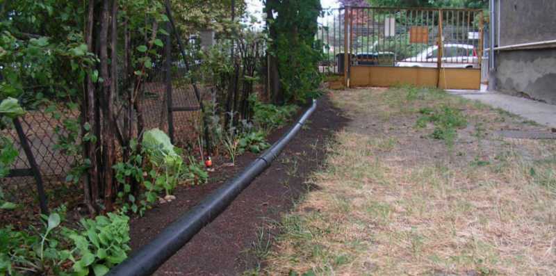 A már évek óta egyre csak romló állagú sárga kerítésről tényleg nem gondoltam volna, hogy egyszer még ilyen szép fekete csőkígyó lesz helyette. A cső melletti feketeséget amúgy a támasztékként odaszórt, a komposztálóból kitermelt, valamint épp az imént még be is locsolt föld okozza. |