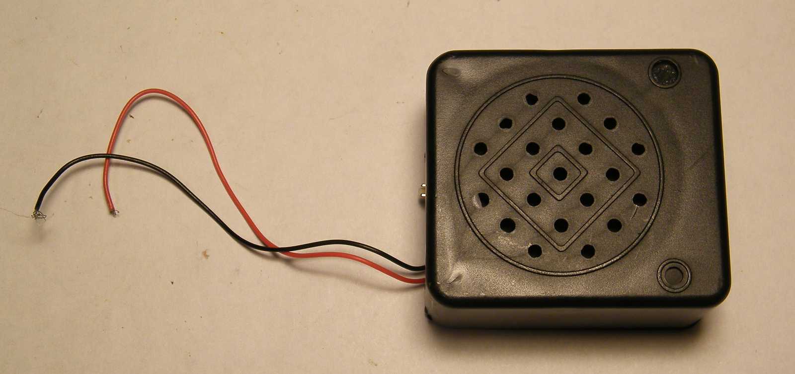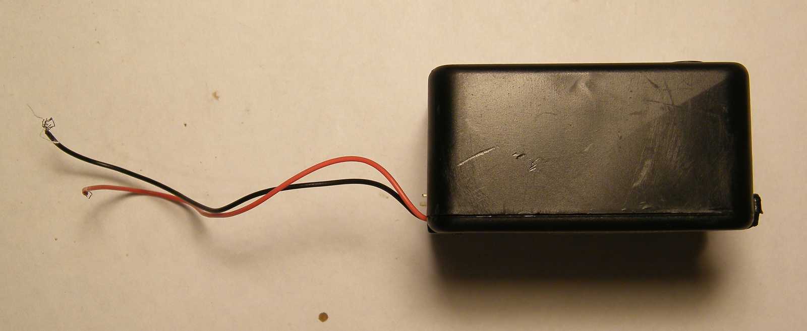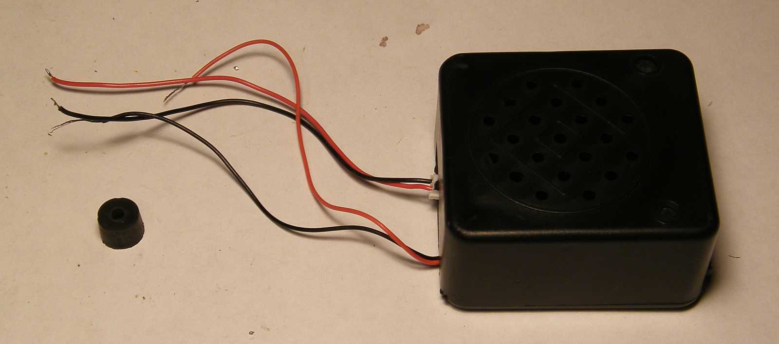 Miközben a dobozból kilógó piros és fekete vezeték végéről a telepcsatlakozó hiányzik, addig erre a két lábra az elektronika működését beindító nyomógomb vezetékei valók, melyek eredetileg a medve egyik lábába épített nyomógombban végződtek. |