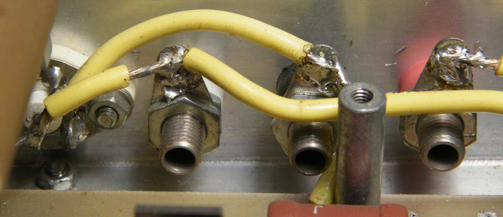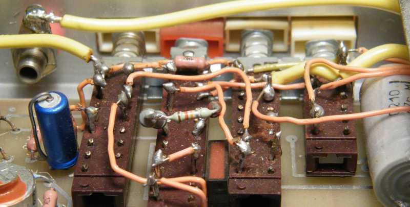 Az Isostat kapcsolósort lehet úgy használni, hogy miközben az egyik oldali lábai bele vannak forrasztva a panelba, addig a másik oldali lábaira, pontosabban szólva forrasztófüleire drótok, vagy alkatrészlábak csatlakoznak, csak ez valahogy nem annyira elegáns. Ahogy ez a girbegurba drótozás kinéz, az pedig pláne nem az! |