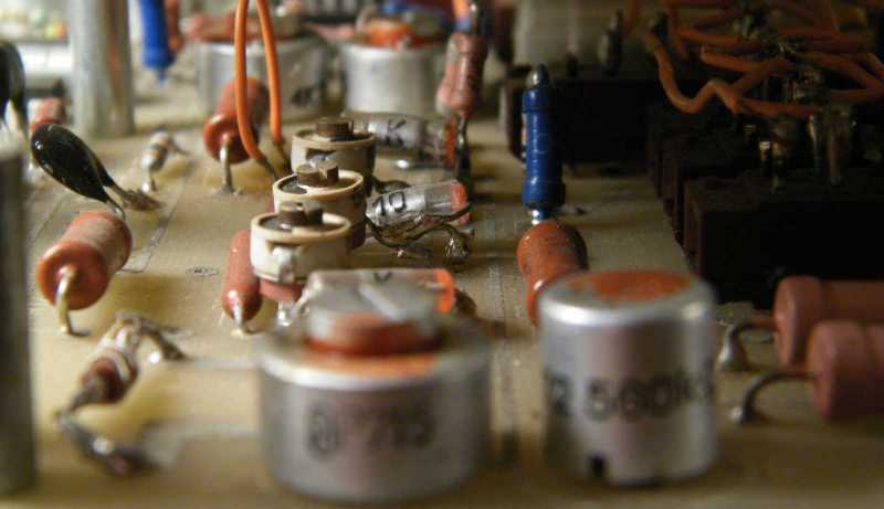 A rengeteg trimmer mellé sajnos csak a pozíciószámuk van odarajzolva, hogy melyikkel mit lehet beállítani, az azonban sajnos már nincs. Ebből kifolyólag a kapcsolási rajz hiányában a trimmerek tekergetésével a műszer működésén inkább csak rontani lehet, mintsem javítani. Mármint ha ezeket elkezdeném tekergetni, keresve köztük a nullát beállító csavart, az összes többi szabályozható funkció elállításával többet ártanék, mint amennyit a nullázással használnék. No nem mintha nem lehetne a trimmerek eredeti állásait alkoholos filctollal bejelölni... |
