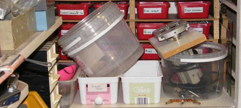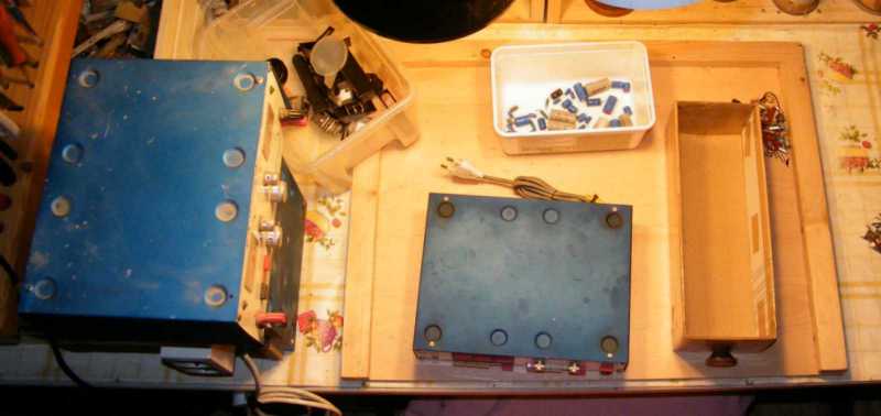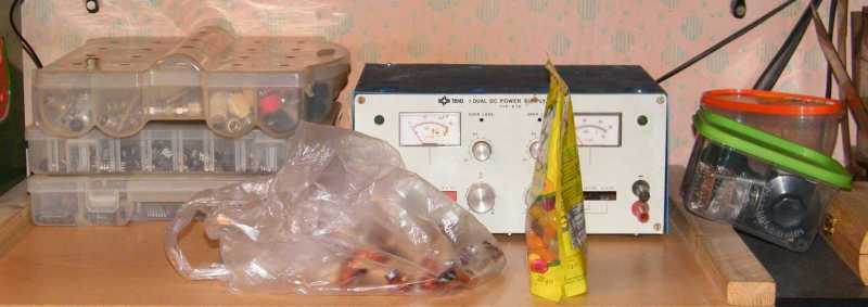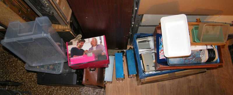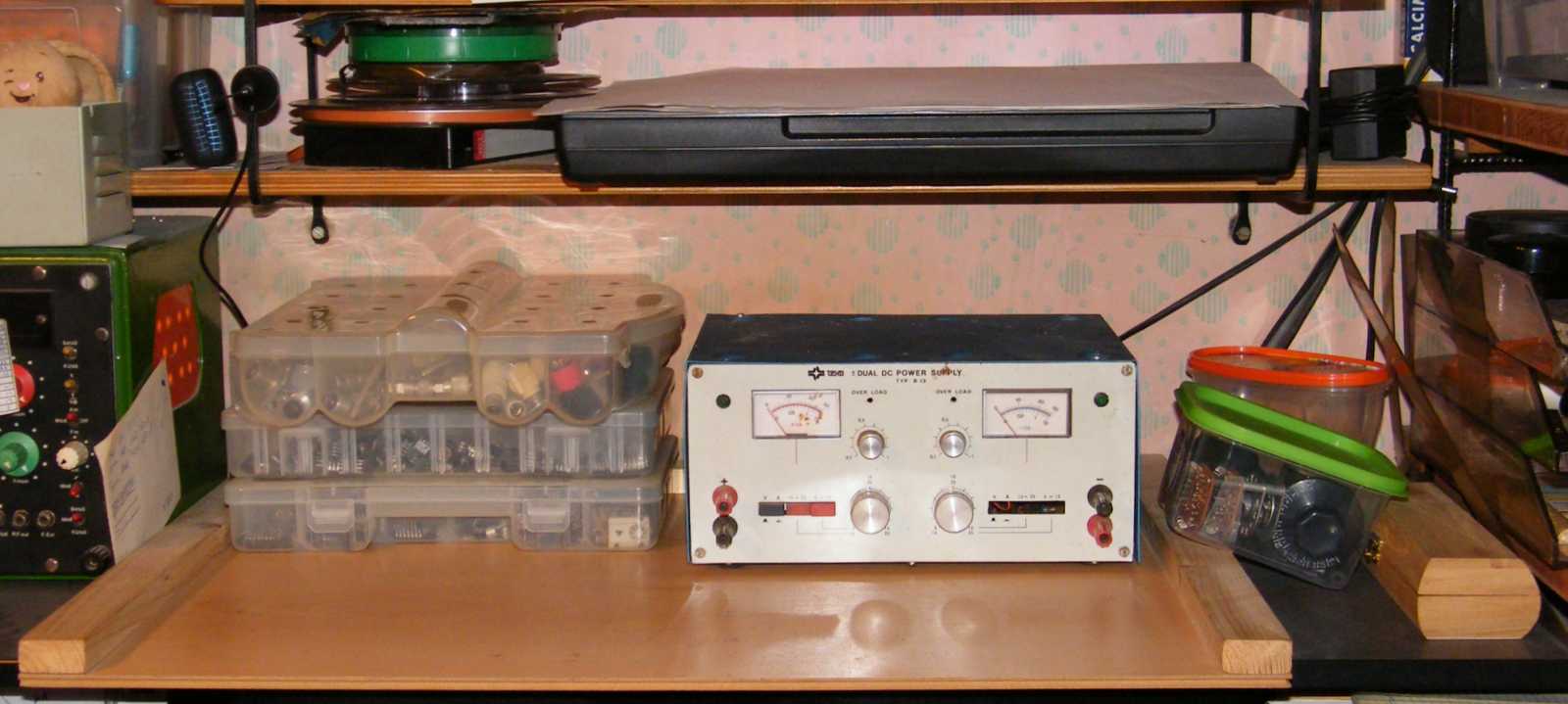 Mikor a minap bemutatott frekvenciamérőt a pincébe lehoztam, a balra látható kéttagú doboztoronyból azért a DC tápegységet vettem el, mert kettejük közül az volt a könnyebb. A táp lakásba történő felviteléről eredetileg szó sem volt, hanem csak a jobbra látható papírfiókot szerettem volna elkókkal feltölteni. Szerintem az lehetett, hogy a hall polcain a szortimenteknek történő helykeresés helyett inkább valami egészen más feladatot szerettem volna találni. |