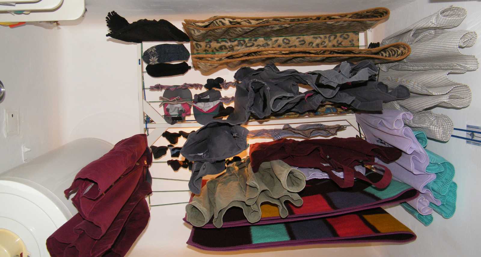 Hogy aznap délután a pincébe újra lemenni még csak esélyem se legyen, fogtam és ahogy volt, az összes előszobában lógó mindenféle munkásruhát is kimostam, mely cselekedetem eredményeként teljesen megtelt a fregoli. Még az a kis üres rész a bordó köpenyem mellett is csak azért van, mert oda nyílik ki az ablak. |