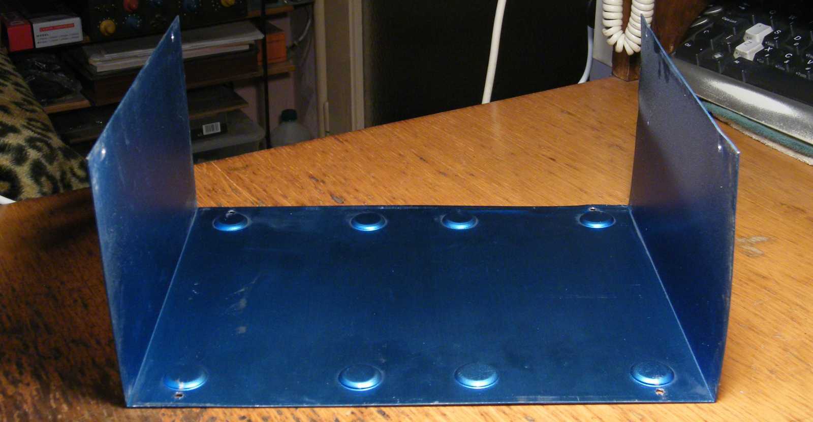 Erről a hátán fekvő doboztetőről az a kedves ifjúkori történet jutott eszembe, mikor amolyan dobozkezdeményként kaptam apukámtól egy ehhez hasonló, csak szemöldökös (értsd kifelé dől elől a felső része) meghajlított alumíniumdarabot. Tettem rá fatapétát, vágtam alá egy darab deszkát, arra felcsavaroztam az elő és a hátlapot, és már építettem is bele az immáron kész dobozba az asztalon akkor még csak próbanyákon létező erősítőt. Hogy ezt a projektet a rádióépítések kapcsán meg fogom-e ismételni? Itt kérem bármi elképzelhető, csak éljek még addig! |