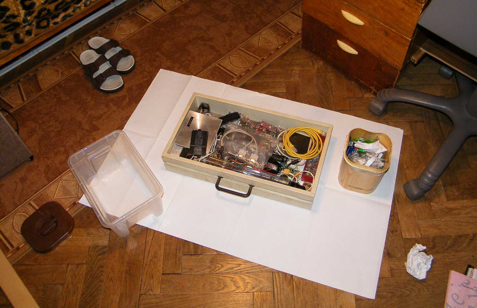 a rádióépítéshez összegyűjtött mindenféle kincsek felett. Ez azért lesz jó, mert