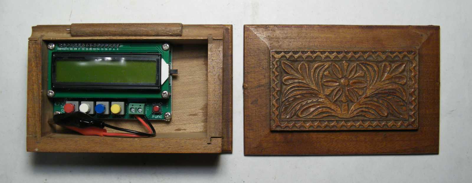 A műszer a díszesen faragott, épp csak levált tetejű fadobozba is csak úgy fér bele, ha elkészítem hozzá a tápmodult. Ettől persze még akár kelleni fog a mostani projekthez, akár nem, a doboz tetejét mindenképp vissza kell erősítenem. Mármint ha ezt nem mostanában teszem meg, akkor komoly esély van rá, hogy a végén még újabb tíz évvel elhalasztódik. Már ha élek még annyit egyáltalán... |