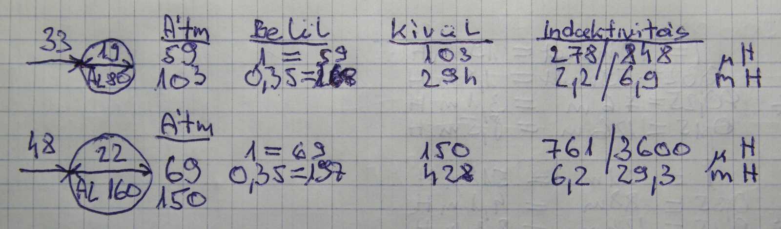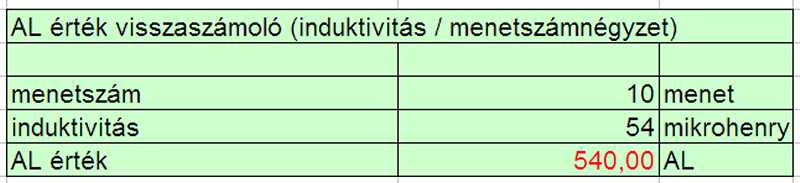menetszámokat és induktivitási értékeket kapom. |