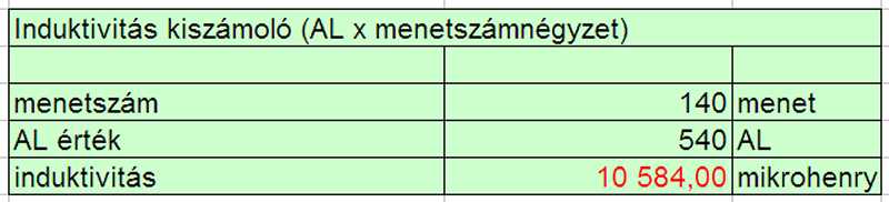 A korábban kiszámolt 12,9 mH induktivitáshoz