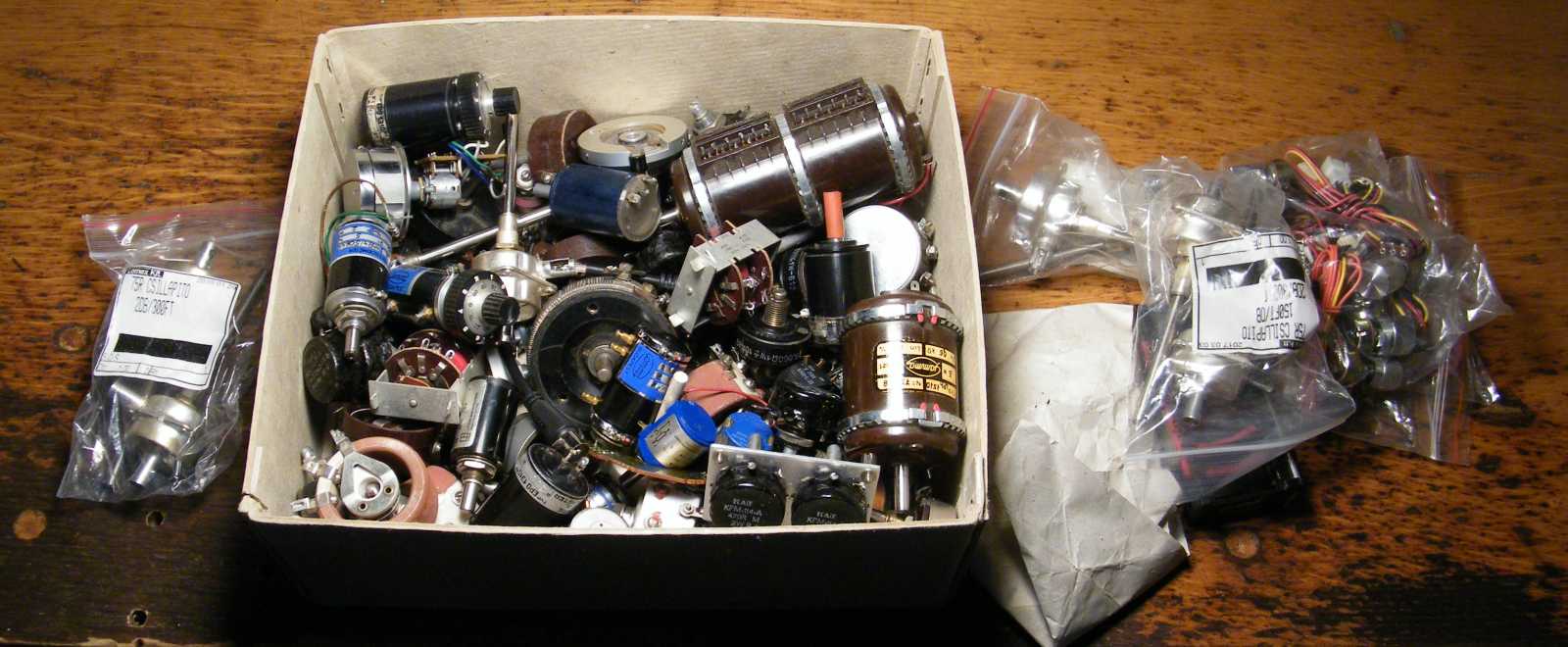 Ebben a huzalpotmétereket tartalmazó dobozban viszont már sikerült addig-addig turkálnom, hogy végül találjak benne egy mechanikailag kitűnő felépítésű, elektronikai szempontból viszont már selejt, konkrétan szakadt huzalú példányt. |
