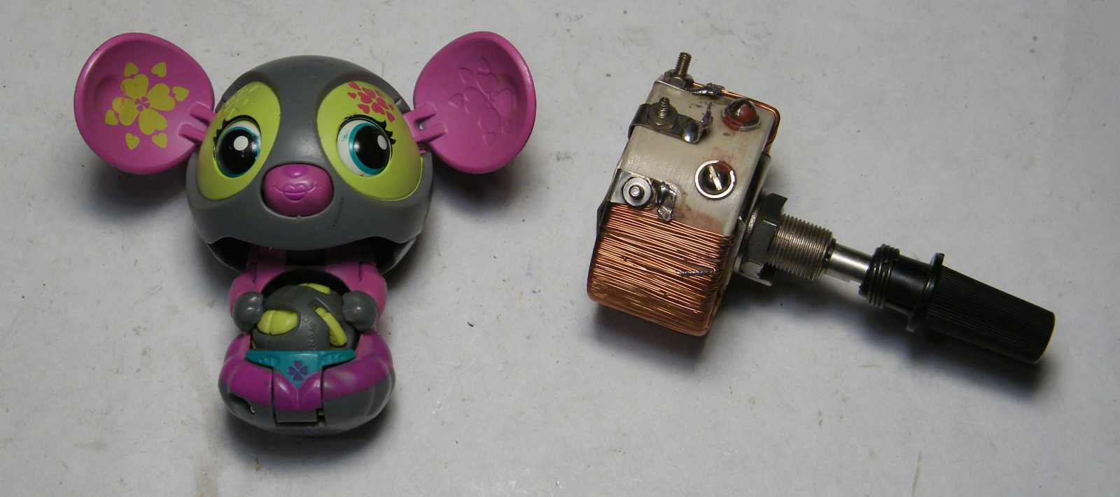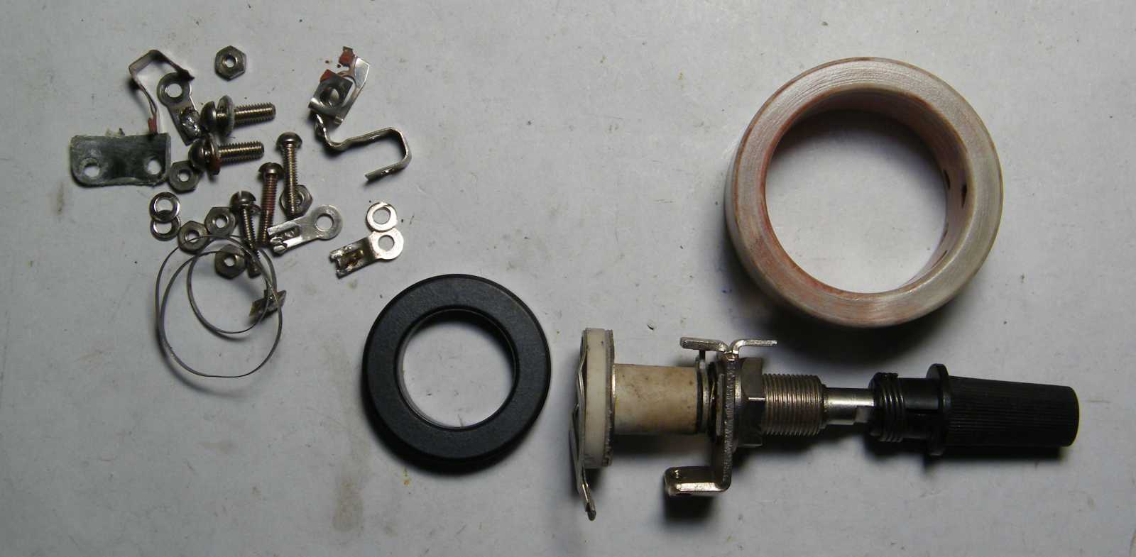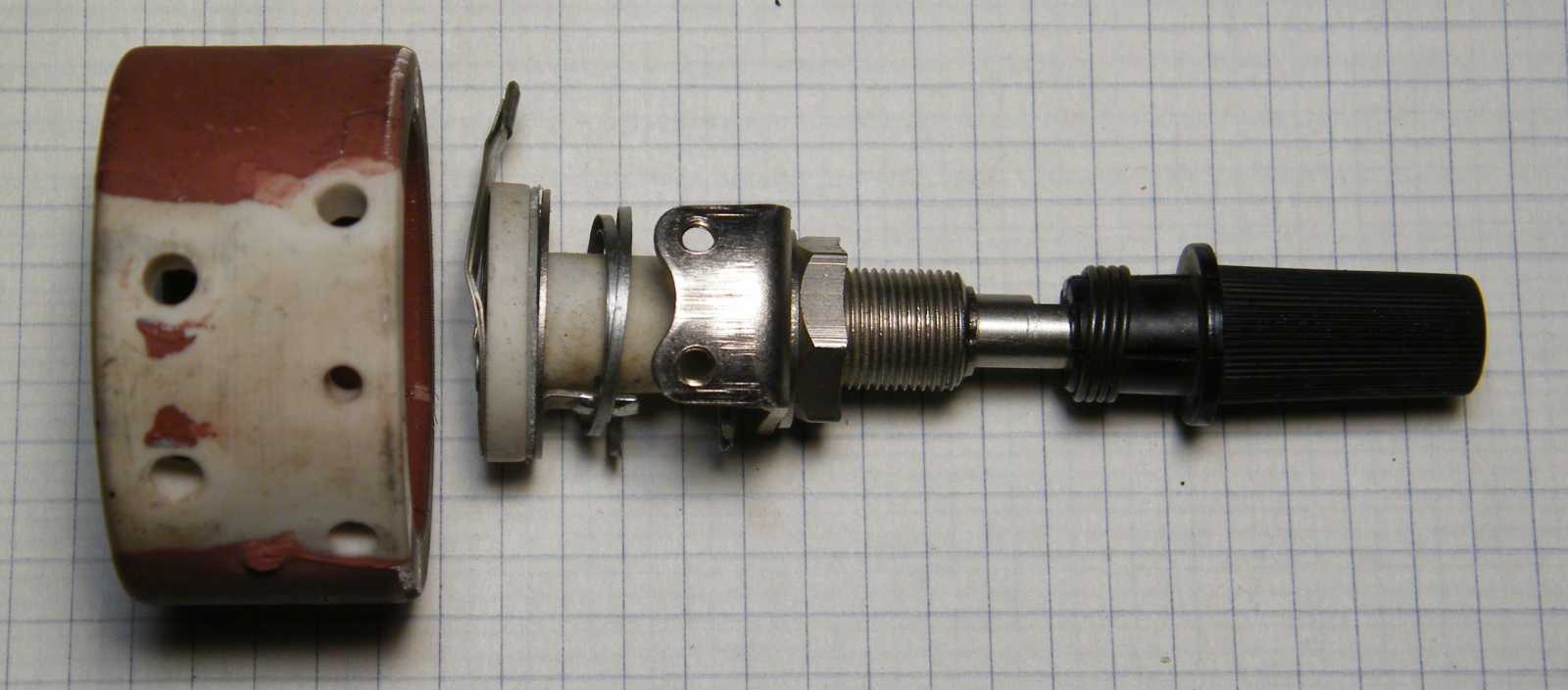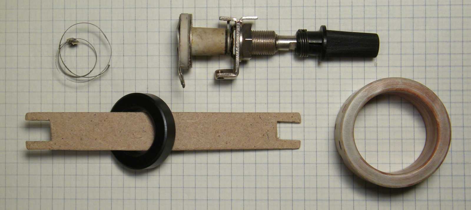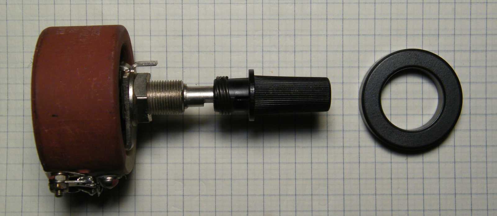 Mikor másnap délelőtt, vagyis még friss állapotban az amúgy beteg, tehát nem kár érte státuszú huzalpotenciométert apró elemeire bontottam, majd a belsejét 180 fokkal elfordítva szereltem bele (lásd a balra értelmetlenül kilógó részt), akkor persze még tudtam, hogy ezzel a mókolással mégis mit kívántam elérni, kisvártatva azonban már annyira nem jött vissza az előbb még meglévő konstrukció lényege, hogy a potmétert szégyenszemre inkább visszaalakítottam eredeti állapotába, pedig biztosra vettem, hogy valami egészen korszakalkotó ötletem volt. Később persze beugrott, hogy mi volt az, akkor azonban valahogy már nem tetszett annyira. |