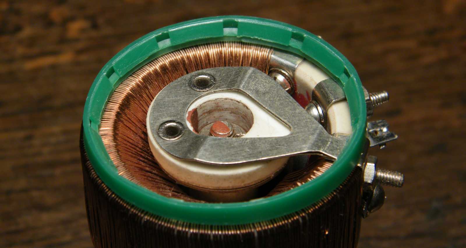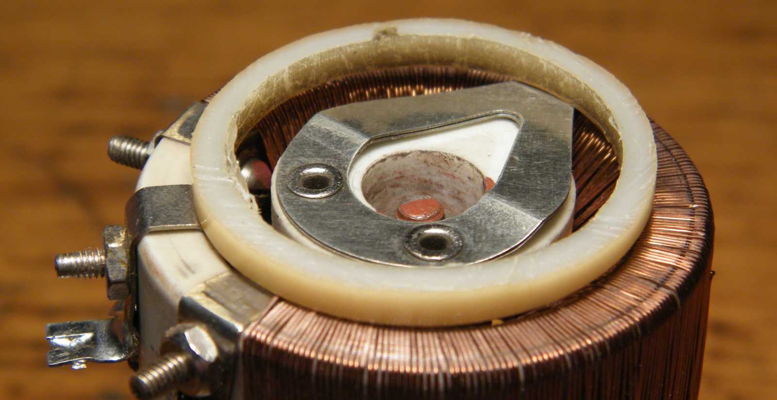 Annak viszont nagyon is lesz jelentősége (legalábbis remélem, hogy úgy lesz), hogy a damilon átbukó tekercselőhuzal elhelyezkedésére - tanulva az elkövetett hibáimból - szerfelett oda fogok figyelni! Mármint a huzal bárhol másutt állhat bárhogy, a damilon átbukó részének viszont szépen kell állnia, merthogy ott fog rajta futni a mozgó érintkező. |