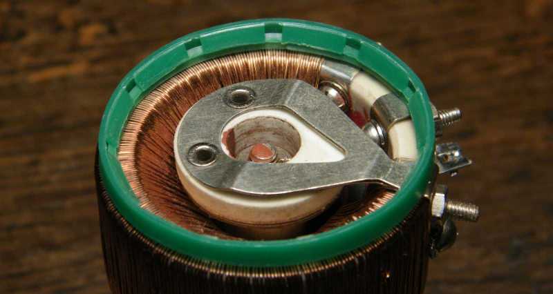 Mivel a 0,45-ös huzalból készített tekercselés a variométer közepén található lyukból több helyet vesz el, mint az elsőként használt 0,35-ös, ezért komolyan félő volt, hogy a forgórész valamelyik része a mozgása közben a menetekhez fog érni, azonban mindkettőnk szerencséjére nem tette. |