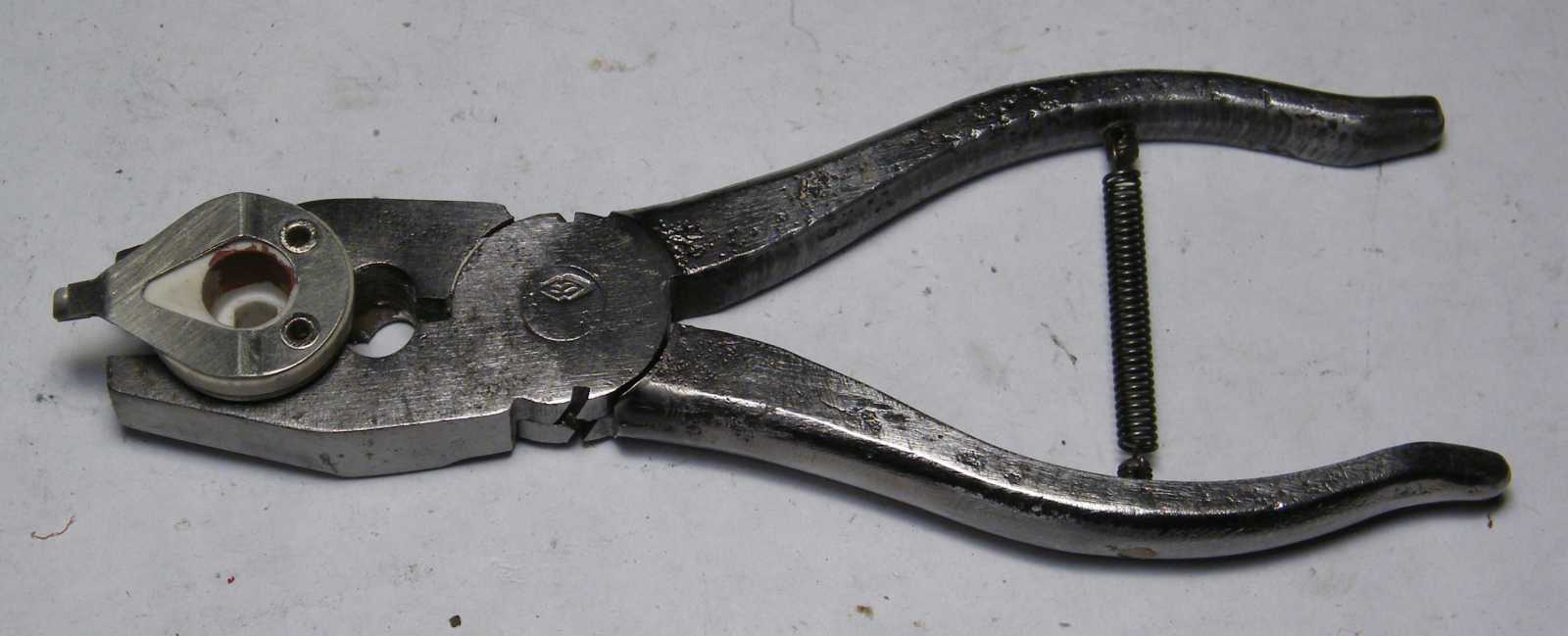 porcelángyűrűre csavarozott fémlemezeket. |