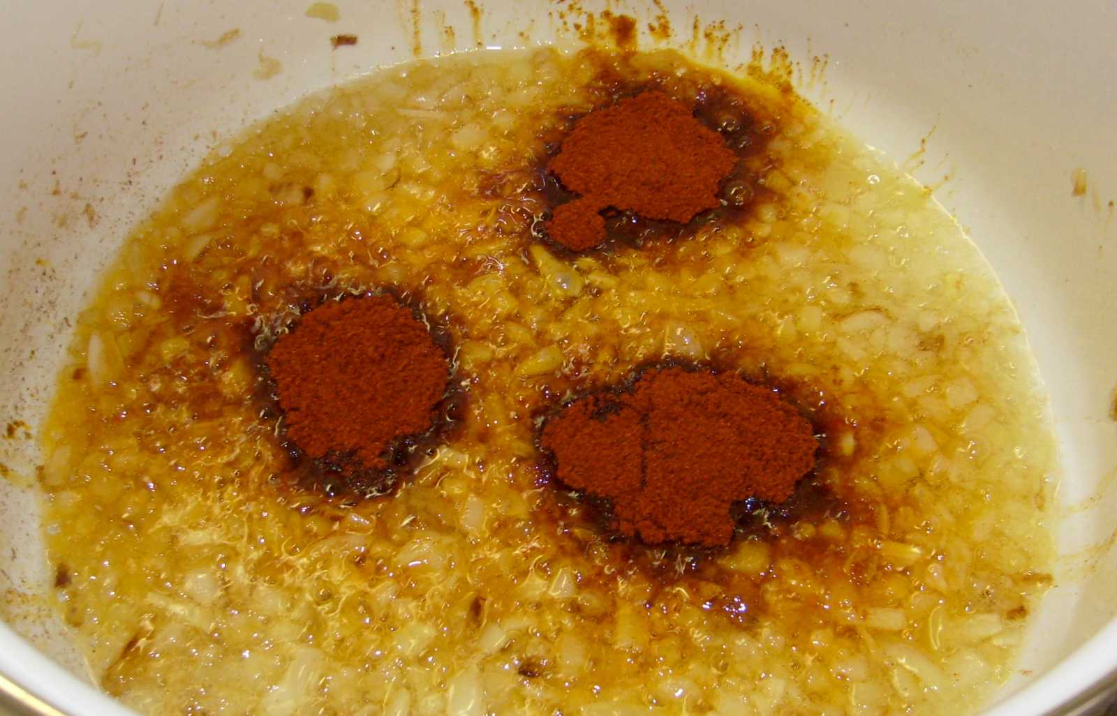 Rászórtam az üvegesre fonnyadt hagymára a pirospaprikát.