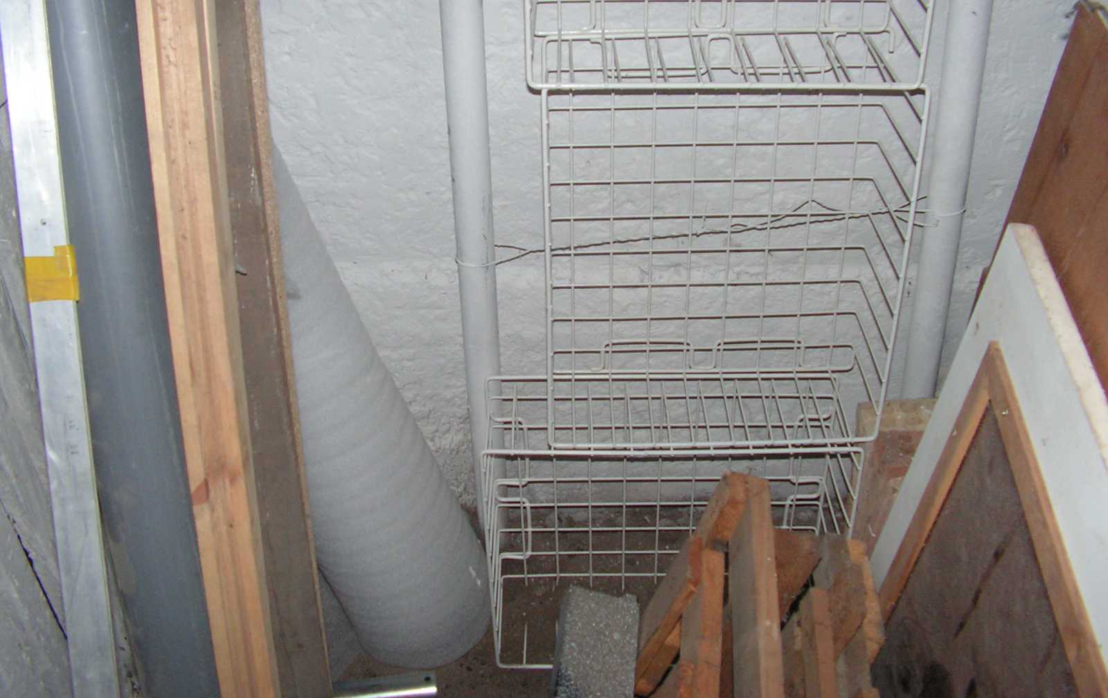 balra a polc, amit egy kedves lakó "felejtett" kint a pincék előtti folyosón.