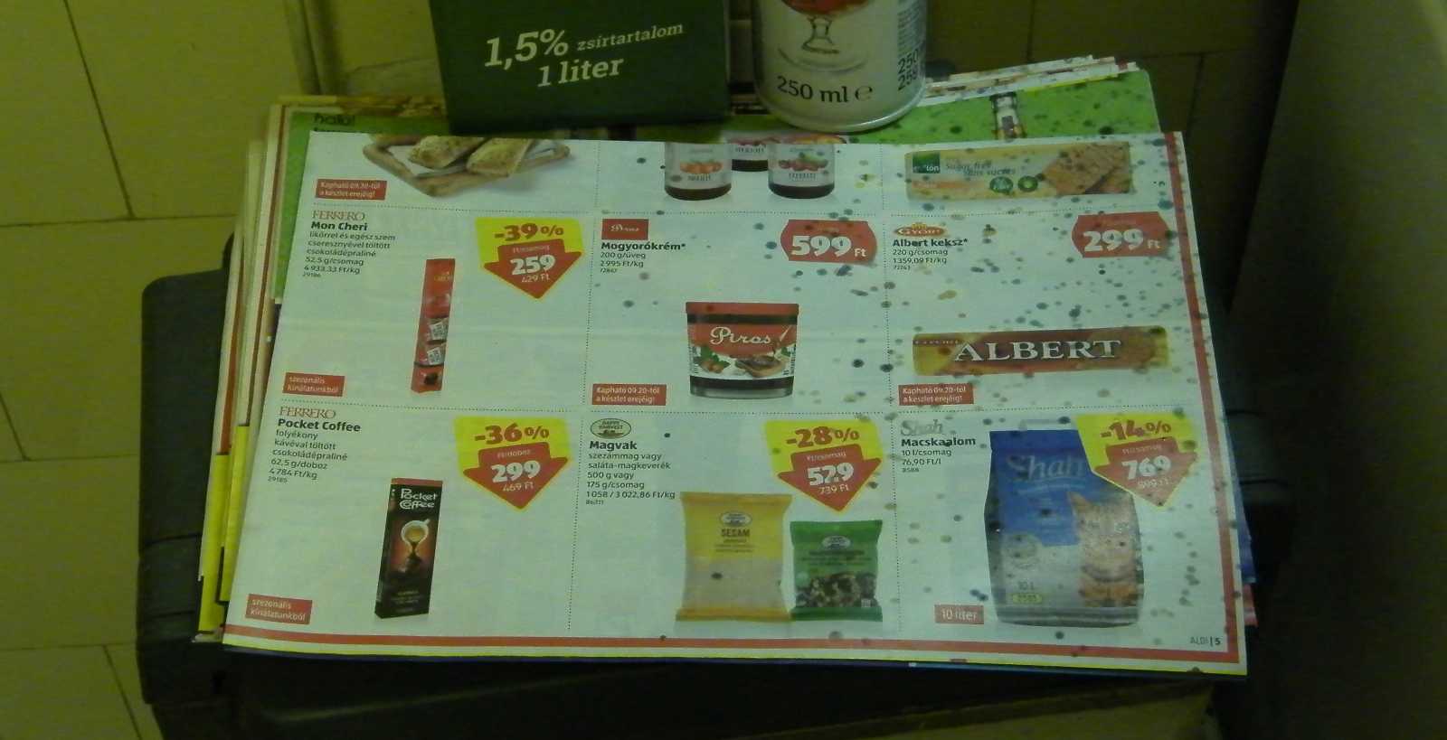 Amit a képen látunk, az egy a gáztűzhely mellett elhelyezett fritőz tetején díszelgő reklámújság halom, amit pedig a felső lapon, az a sülő máj pukkanása közben a fedő alól kifröcskölt zsír. Na ezért nem szabad a májat fedő nélkül sütni, és persze sülés közben nézegetni sem. Meg persze azért sem, mert akkor még képes és kipárolog belőle a nedvesség. |