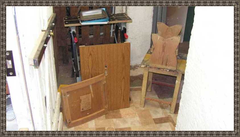 Gondoltam ezeknek azért csak van már helyük, de aztán kisvártatva kiderült, hogy a hokedlinek mondjuk még mindig nincs. A hokedli amúgy az összecsukható munkapad sokkalta bizonytalanabb lábakon álló elődje, mely jelzővel nem a már ingatagságára utaltam, mint inkább arra, hogy mivel felül szélesebb mint alul, pláne nem terpesztenek a lábai, könnyű vele munka közben felborulni. Tulajdonképpen már attól hajlamossá válik feldőlni, ha ráfogatom a szélére a satut. |