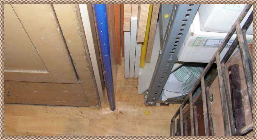 Miközben én az apróságok rakosgatásával múlattam az időt, a kövér bútorlapok a pincefordulóban várták, hogy bevigyem őket a lomos pincébe. Hogy miért nem vittem be őket egyből egészen odáig? Nos nem azért, mintha annyira nehezek lettek volna, hanem azért, mert a jelen képen nem látható, de amúgy innen nézve nekem jobb kézre eső ajtót folyton kerülgetnem kellett volna. Én meg ugye nem szerettem volna kiakasztani a derekamat valami esetlen mozdulattal. |