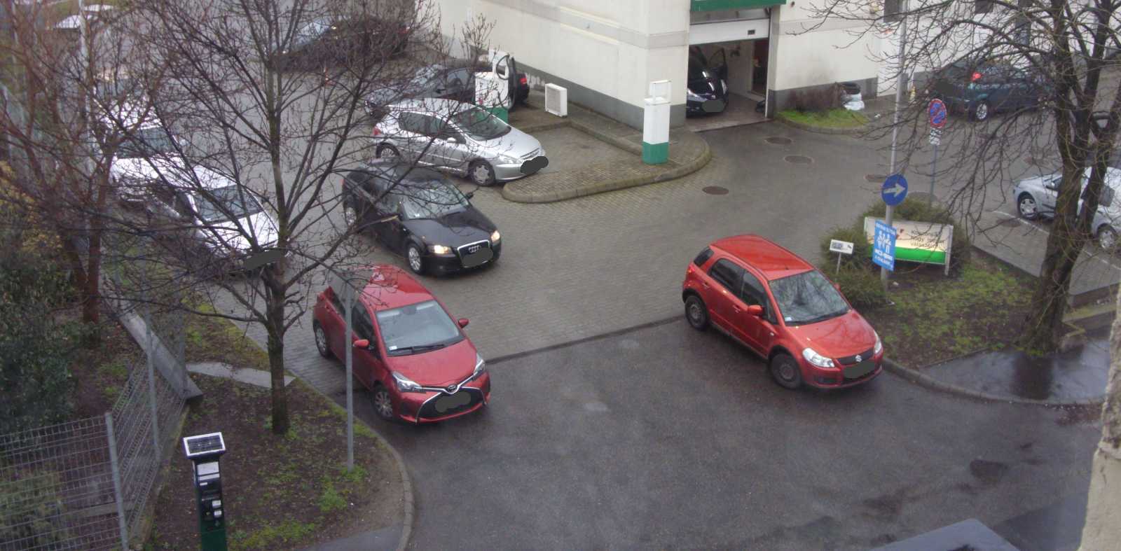 Az egyik autó a kapubejárót állja el, míg a másik az egyiket. Ezt a helyzetet azóta egyébként megszüntettük, mert egyrészt az udvar (a kocsi beállóval együtt) tűzoltósági felvonulási útvonal (vannak lakások, melyek csak a kertből olthatók), másrészt a képből kilógó kocsi pont a vízóra aknáján áll. Márpedig ha valami baj van (csőtörés), nálunk csak az aknában lehet elzárni a vizet. |