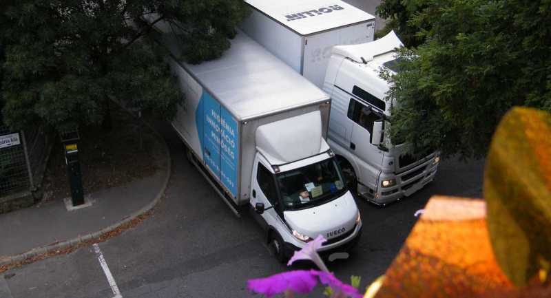 kisebb teherautó egy amolyan se ki, se be helyzetbe került.