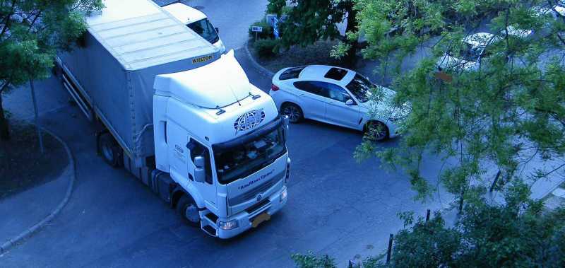 egy teherautó is kifér, de vajon mit gondolhatott a másik sofőr?