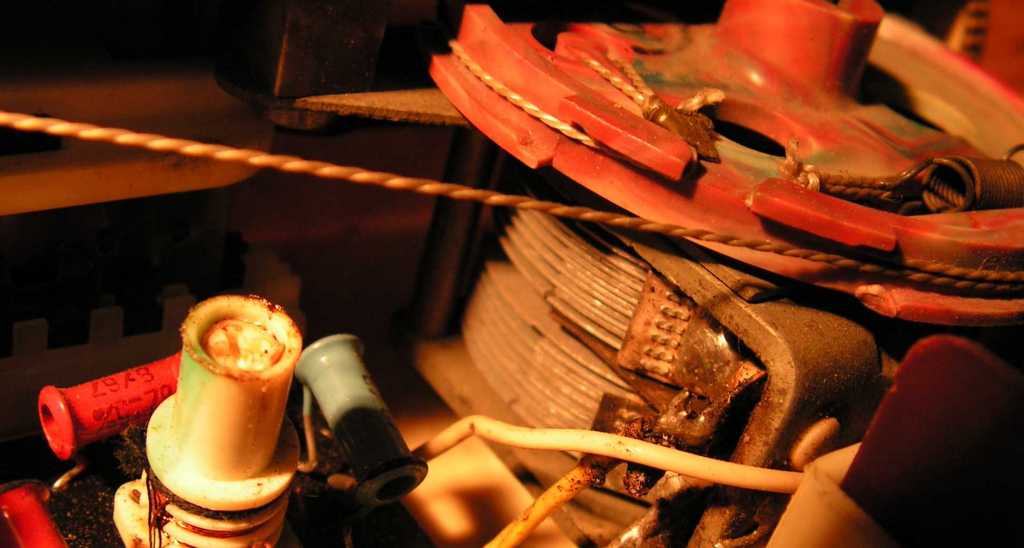Nézegettem egy darabig, hogy vajon minek van bordásszíj a rádióban. De hiszen ez a skálahúr és a mutató egyben! Összeraktam, majd összeeresztettem a két rádió hangját. | ||||