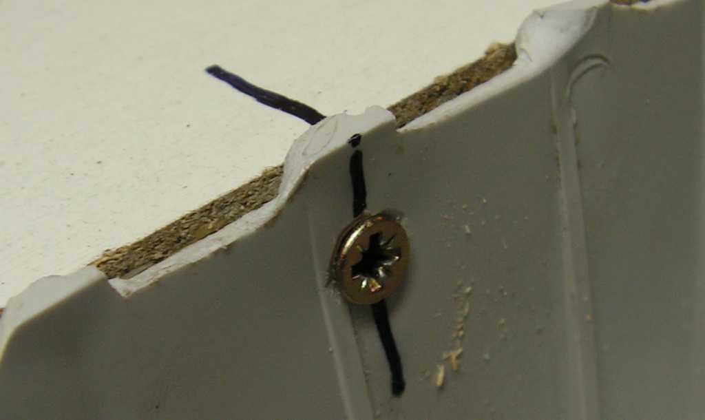 Nem tudom mennyire látszik, de ez a lemez alaposan el van görbülve. Vajon mi történhetett? Talán egy erőteljesebb rúgás eredménye lehet? Gondoltam kiveszem a lemezt és kiegyenesítem, de nem így cselekedtem. Egyszerűen bedöftem a lemez alá a kedvenc kéknyelű csavarhúzómat, majd visszagörbítettem vele a lemezt az eredetihez közeli állapotba. |