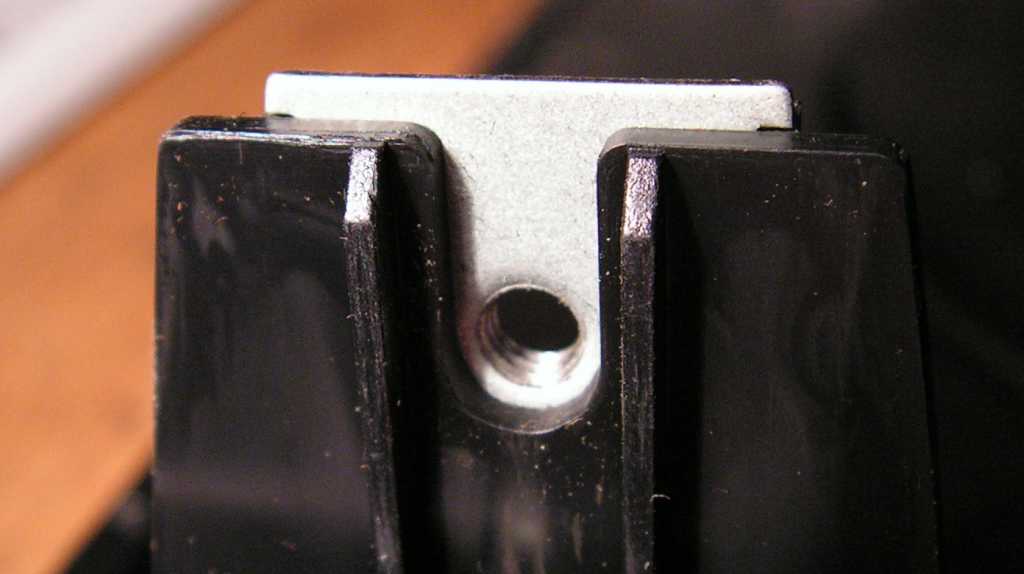 Vannak egyszerű feladatok, mint például két dolog oldható kötéssel való egymáshoz rögzítése. Erre valók a csavarok. Bizony bizony! Ez a masina még a patentok támadása előtti időből való, és akkoriban még nagyban a csavarok uralták a világot. A csavarokat már mutattam, ez itt balra pedig az ő anyjuk. Ez a vaslemez van belenyomva a műanyag felöntésbe. Egyszerű, olcsó, és működőképes megoldás! Az előlapot visszarakva a dobozba, a lyukak pontosan ott vannak ahol a csavarok bemennek. Aki rakott már össze nem nyugati gépet, az tudja, hogy ez teljesen másképpen is lehet! |