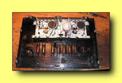 A már korábban említett "skálahúrozás", illetve annak totális hiánya. Itt egy kép a szétszedett, illetve inkább csak kiszedett skálamutatóról. Abszolút funkcionális, nincs benne semmi extra. Nem világít a mutató zölden foszforeszkálva, nincs negyven deka plexi az előlapban, de nincs is benne a sok felesleges csicsa az árban! |