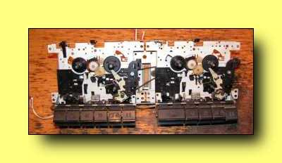 | Folytatva a fent elkezdett gondolatmenetet, szóval ez a mechanika van sok ennél a hifitoronynál márkásabb magnóban is, csak szebb gombokat raktak rá, szebb előlapot tettek elé, jobb elektronikát kötöttek a fejekre. Nagy széria, olcsó termék, de ezt már mondtam. Jobbra a mechanika látható kettébontva. Azért a motort és a csavarokat kimentettem belőle. A fejek mind a jobb, mind a bal oldali magnórészben alaposan el voltak kopva. Érdekes de nem a fejmagnál látszik bemaródás, hanem alatta. |
