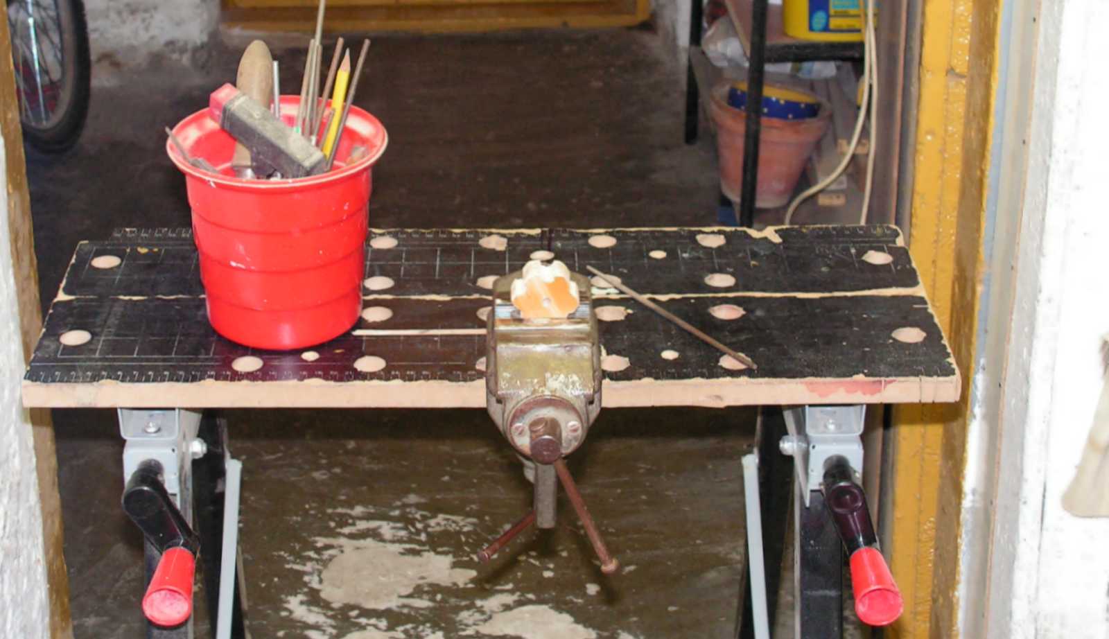 a pince előtt a munkapad, amitől kényelmetlen érte behajolni.