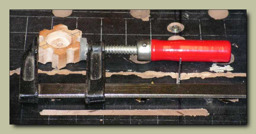 idejére egy asztalos szorítóba fogtam a fadarabot.
