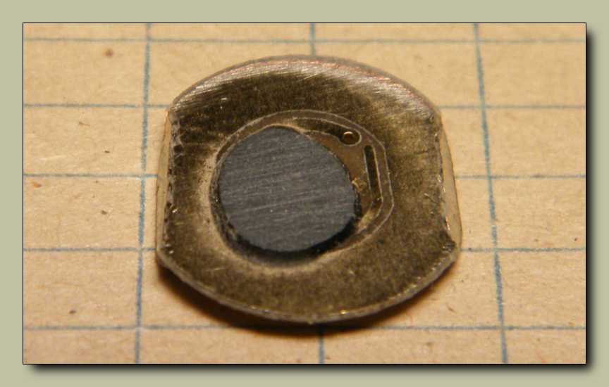 A gombocska lényegi része, az apró fekete paca alatt megbújó chip.