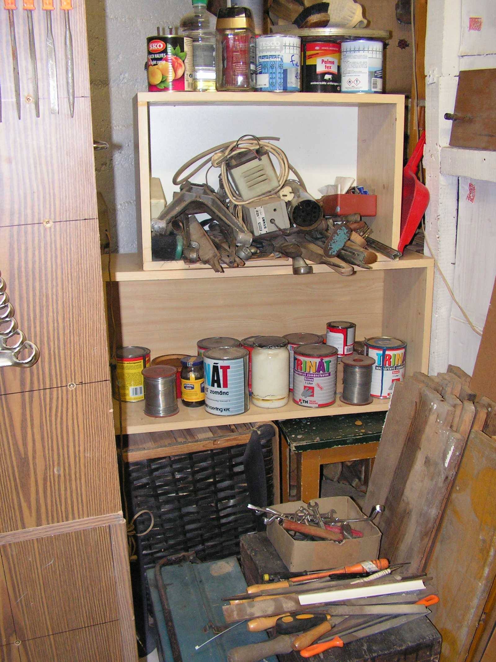 azokat a szerszámokat, melyekkel az előbb még a többi polc volt eldugítva.