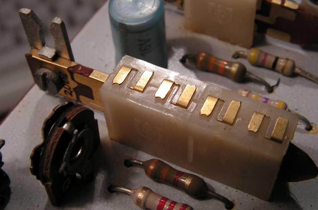 Igazi potméterek. Persze a maiak is igaziak, csak mára már annyira nincs bennük anyag, hogy már alig lehet őket felismerni. A tartósságot meg ne is említsük... Ezeket a potikat kiszedem, mert ezek még biztosan jók lesznek valamire. |