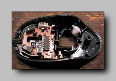 Ez a két kapcsoló érzékeli az egér gombjainak megnyomását. A patkány ezen a téren ennél azért sokkalta bonyolultabb felépítésű. A patkány ugyanis tele van tömve mindenféle receptorokkal, amelyek mindenféle irányokban vannak elhelyezve. Van amelyik például még egy kicsit ki is áll a patkányból. Ilyen például az orra, és az abból még külön kiálló bajsza. Ezzel szemben az egér gombjai belesimulnak az egér felületébe. |