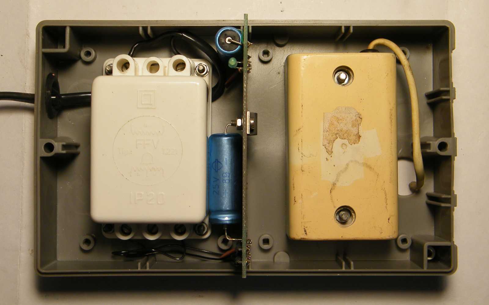 A doboz aljából néhány kósza vezeték lóg ki.