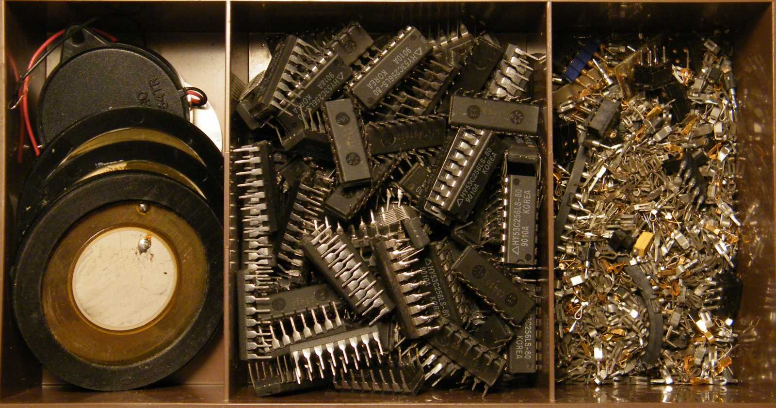 Minden igyekezetem ellenére (ez mondjuk egy kicsit azért erős volt), a polcra rámolt lomjaim száma nemhogy csökkenne, de egyenesen növekszik! Ez persze egyértelműen azért van, mert mikor épp egyik boncolásra váró kincsemhez sincs kedvem, olyankor - hátha az újakhoz majd lesz alapon - kerítek hozzájuk még. Mivel szinte sosem szedem szét őket azonnal, idővel az újak boncolásától is elmegy a kedvem, aztán csak állok előttük mélán, miközben azon csodálkozok, hogy mi van itt már megint. Most például egyértelműen túl sok lett a hangszóró. |