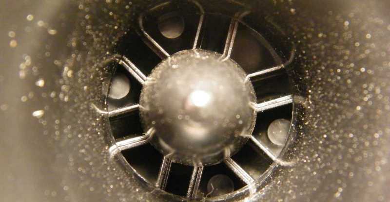 Mivel a piezo lapocskát nem engedik mozogni a bekötővezetékei, ezért azok folyton félrehúzzák a membránt, aminek aztán inkább ez lesz az alapállapota, mint amit az eggyel ezelőtti képen láttunk. A feltámasztás nélkül vergődő membrán hangját persze képzelhetitek... |