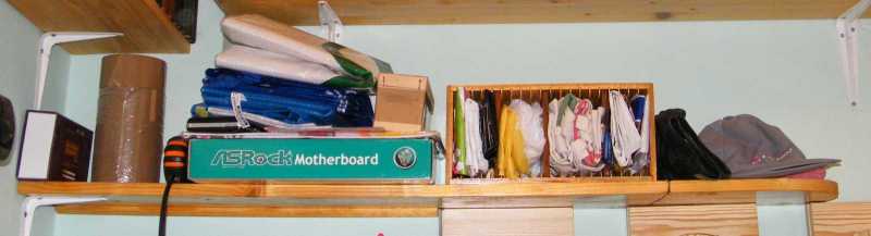 A lakkozási, illetve az osztólemez készítési feladatba nem azért nem csaptam bele, mert mondjuk lusta vagyok (ami jellemzés egyébként tökéletesen illik jelen hangulatomra), hanem azért, mert nem pincei barkácsoláshoz, hanem boltba menéshez voltam öltözve. Mivel a pincébe visszamenni nem volt kedvem, ezért nekiálltam a polc tartalmát legalább úgy nagyjából elrendezni. |