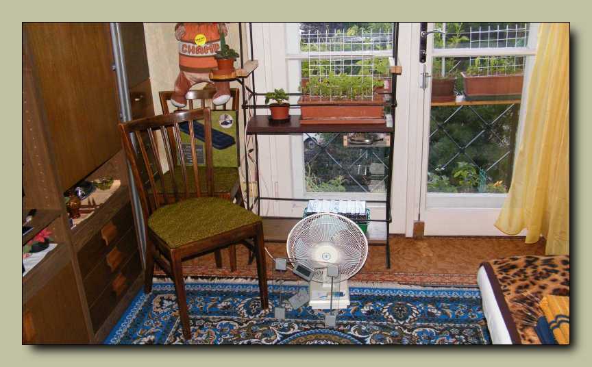 Az ablaknak támasztott mérleg - épp mint ahogy a polc alá épített fiók - alig látszik.