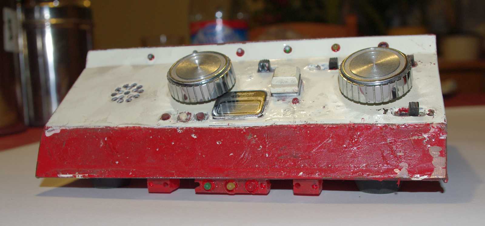 rádióról származó fényes forgatógomb között egy apró nyomógomb, valamint egy újabb LED