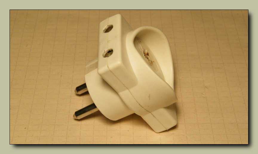 termelődött hőtől olvadt el. Mivel itt belül nem látszik semmiféle érintkezési hiba, az eset valószínűleg úgy történt, hogy vagy nem volt meghúzva a villásdugóban az egyik vezetéket rögzítő csavar, vagy egy amúgy szintén régiféle, még csupa fém vékony szárú dugó lett beledugva, ami aztán a vékonysága okán rosszul érintkezett. Ezt az elosztót - bár belülről is megtekintve nyilvánvalóan hibátlan - kidobták, míg a valószínűleg beteges dugójú ócska hősugárzó azóta is vidáman (persze csak míg rá nem ég az egész lakás) olvasztgatja a többi szerencsétlen aljzatokat. |