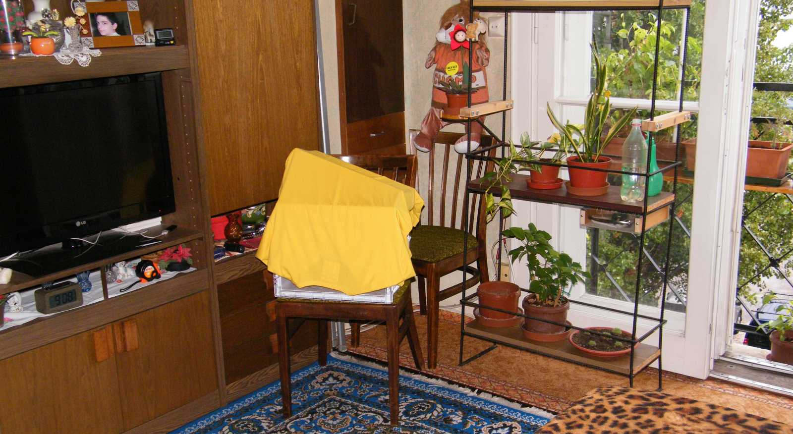 Hogy az életveszélyes helyzet mielőbb megszűnjön, ráállítottam a ventilátort az elmosogatott alkatrészek forszírozott szárítása című feladatra. Ezt amúgy azért tehettem meg (mármint a ventilátor konyhából történő behozását), mert ott hiába kellett a hűtő gyorsabb leolvadásához, a fedél nélküli konnektorok okán már nem volt hova bedugni. |